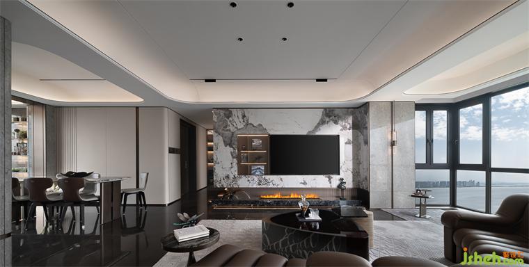 窗外水天映色,回到這一隅敞闊的望江客廳,整體空間以低奢美學(xué)為主調(diào),九江八里府平層樣板房設(shè)計在日光與燈光交替中,關(guān)聯(lián)獨(dú)立或公共的空間,沒有約束與限制,卻又涇渭分明。