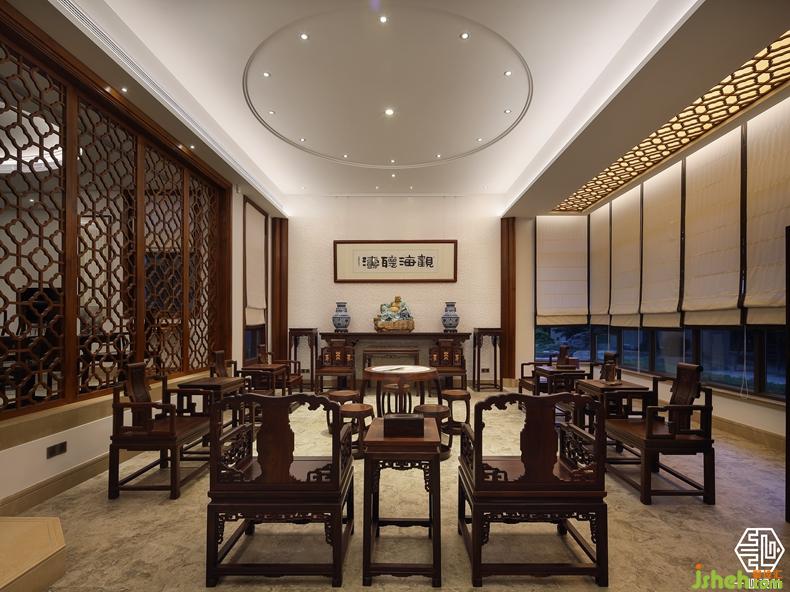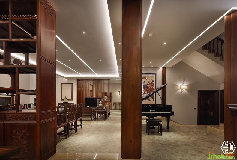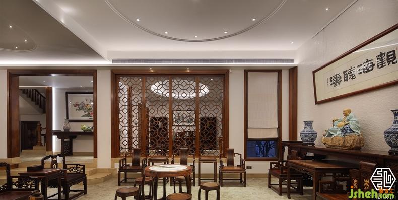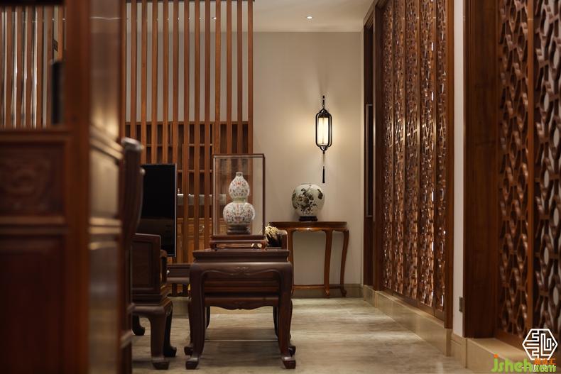 該案由兩個(gè)別墅圍合成一個(gè)院落形式,故稱合院別墅。設(shè)計(jì)師根據(jù)兩位業(yè)主不同愛好,用中式的手法演繹兩種不同風(fēng)格的中式設(shè)計(jì)。其中嶺南人家酷愛柚木,酷愛紅木家私,別墅裝飾設(shè)計(jì)師巧妙的合其所好,熾烈的嶺南文化與奔騰的紅木藝術(shù)風(fēng)格相互融合,形成了具有南方特色的中式別墅風(fēng)格。