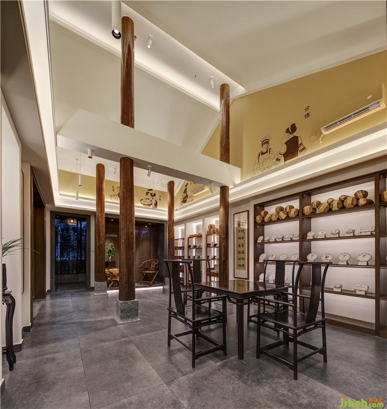 建筑作為空間序列的基礎元素,通過設計提升空間的高度,打破空間的固有平衡,采用柱子的架構與整個坡屋頂的造型連貫起來,讓空間的尺度更加舒適。不加修飾的木柱、返古的地磚、挑高的坡屋頂,室內設計師襯托出普洱茶的源遠流長以及原生態(tài)的品質。