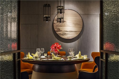 傳統(tǒng)的語(yǔ)言,現(xiàn)代的詮釋。墻面哥特式尖劵造型,充滿了理性的設(shè)計(jì)語(yǔ)言,但那份來(lái)自燈光、酒紅色的布簾、鈦金色造型、琥珀色玻璃球的暖意,拉近了人與人的距離。