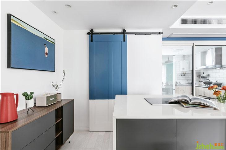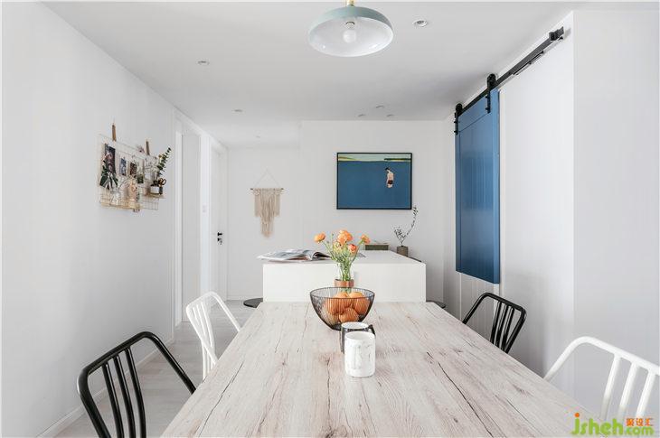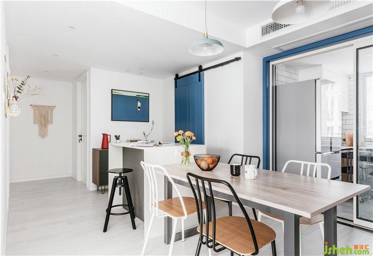 藍(lán)色穿插在餐廳空間中,挑選的裝飾畫也巧妙的運(yùn)用了藍(lán)色,