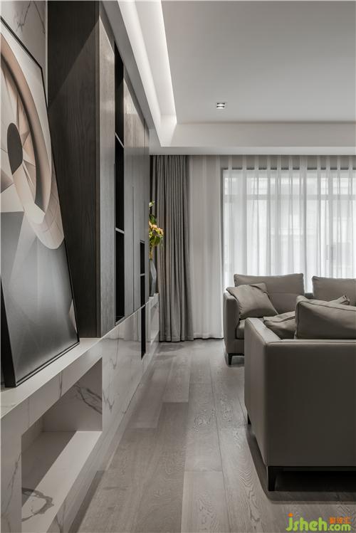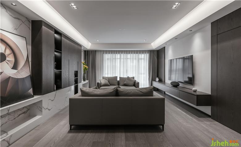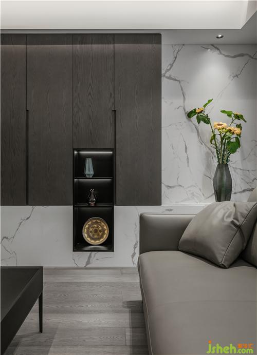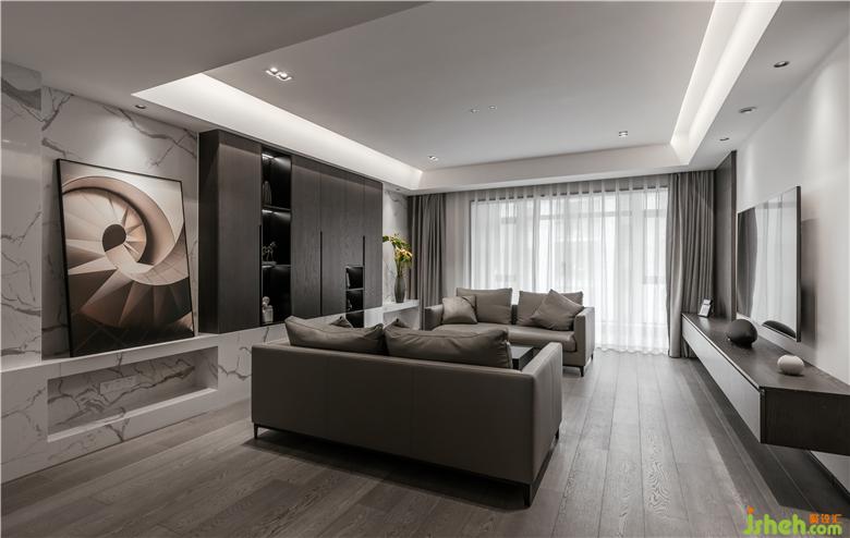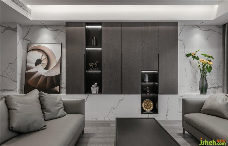 在房屋結(jié)構(gòu)布局上,我們舍棄了傳統(tǒng)的客廳沙發(fā)擺放的方式, 轉(zhuǎn)而變成面對(duì)面方式,更注重強(qiáng)調(diào)客廳的互動(dòng)性,材質(zhì)方面,用黑白紋路的大理石搭配深色木作,既能有層次又彰顯檔次,整個(gè)室內(nèi)設(shè)計(jì)師的手法簡(jiǎn)潔利落沒(méi)有過(guò)多的裝飾,依靠空間感和材料本身凸顯出整個(gè)設(shè)計(jì)的氣質(zhì)!