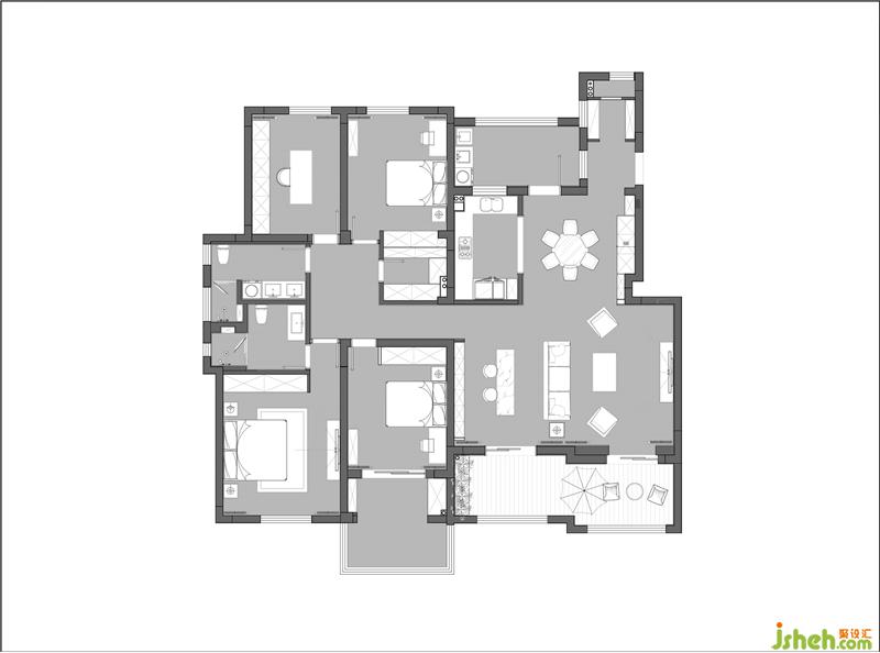 接觸到業(yè)主于小姐一家時對于風格是沒有限定的,更多的是對于開闊空間的需求和需要簡潔干凈的空間,一雙兒女擁有屬于自己的獨立自由“國度”,還有就是希望以實用為基礎(chǔ) 為生活多考慮,滿足大空間的儲物需求。