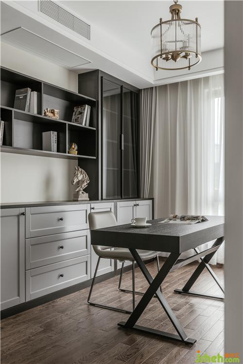 書房整體用穩(wěn)重的顏色進行過渡,圍繞整體裝修設(shè)計的格局設(shè)計上,又保持了它需要的安逸。