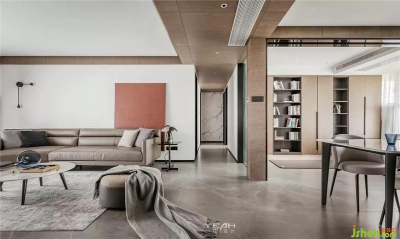 整個客廳添加了飾面的點綴,在整體墻面留白的基礎上,加入了一絲木的溫韻。