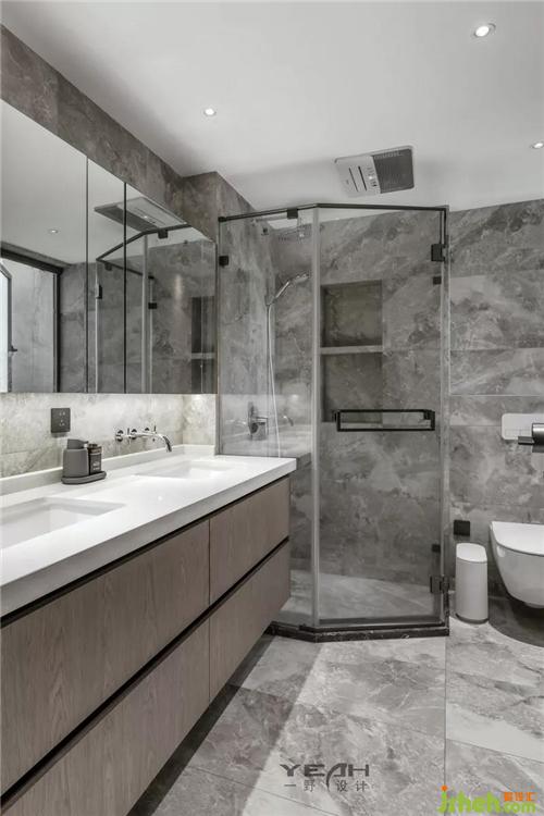 衛(wèi)生間在燈光的映襯下,瓷磚所體現(xiàn)的行云流水,讓空間有那么一絲絲動態(tài)感室內(nèi)設(shè)計(jì)師。