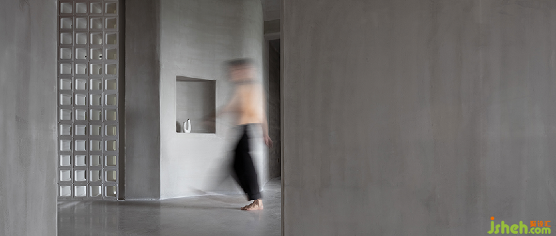 摒棄過多材質(zhì)堆砌,整案墻面都選用了水泥藝術漆,地面是現(xiàn)磨水磨石,色調(diào)達到一致,在這一體之間,去切割出每塊功能分區(qū),也考慮了構造的穿插問題,不多不少。