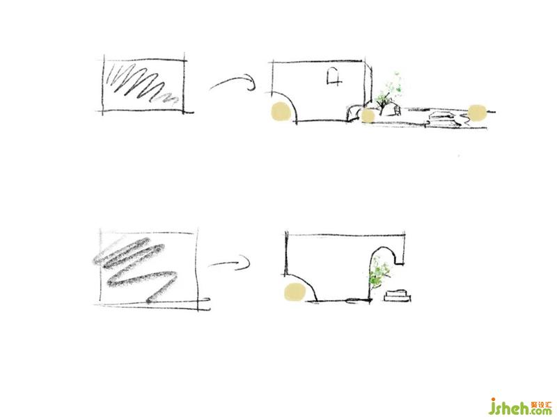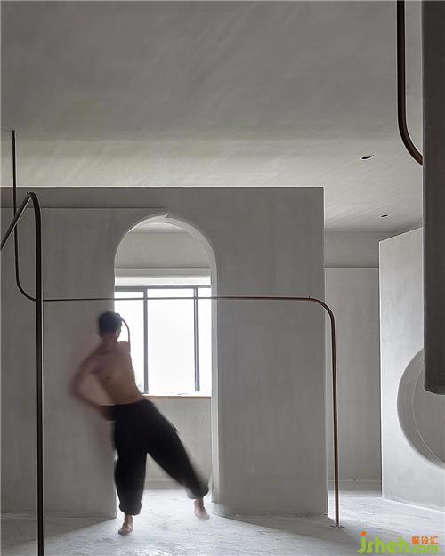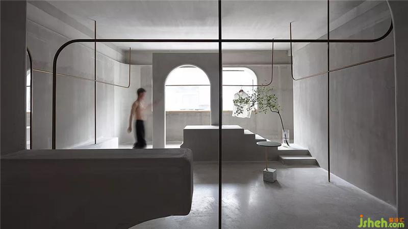 人和空間互動,可駐足,可前行,不枯燥,動起來的空間可以增加的更多趣味性,弧線在暗示一種溫柔對待的方式,去和空間對話。