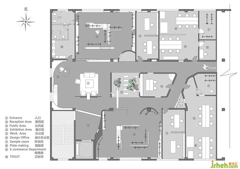 In order to preserve more natural light in the northern area, the sample area is opposite to the southern area. The northern area gives more transparent background surfaces and uses large volumes to separate them from each other and echo each other. Walking in the space adds more emotional points, which is exactly what this excellent entrepreneur brings to me.