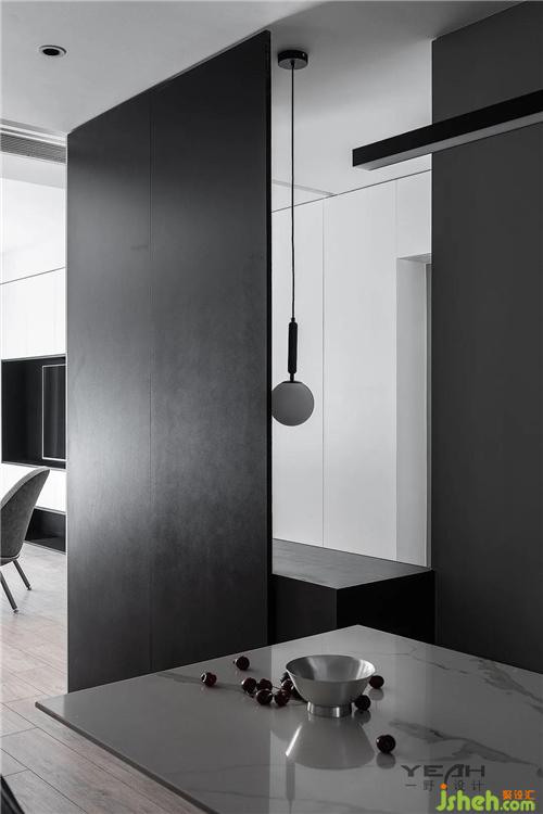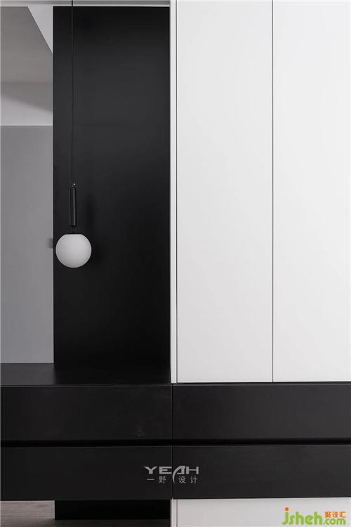 The traditional way of entering the entrance is abandoned. Fortunately, the residents don't have high requirements for the storage of the shoe cabinet, so they boldly remove the practicality and make the appearance to the extreme.