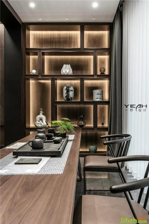 品茗需要的心境,茶室都有。外部空間的遼闊被玻璃墻引入,家具古色古香,氛圍恰到好處。