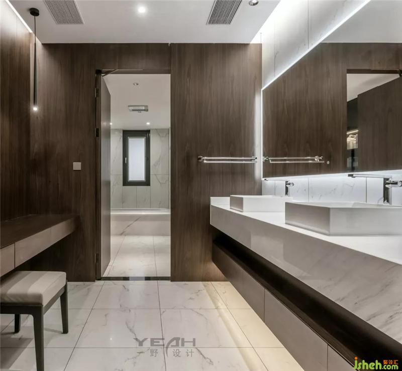 The main bathroom has a smooth and reasonable line of motion, and the light belt shapes the space more lightly; when you step into the space, all the hard work is gradually removed, and your body and mind become relaxed and happy together.