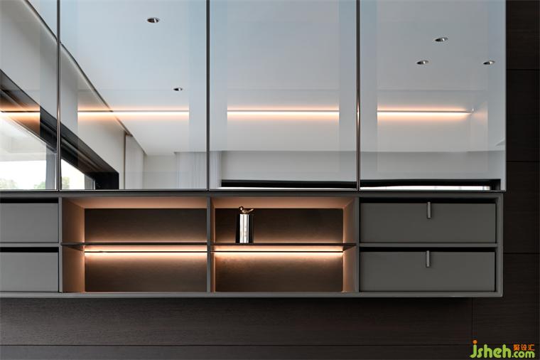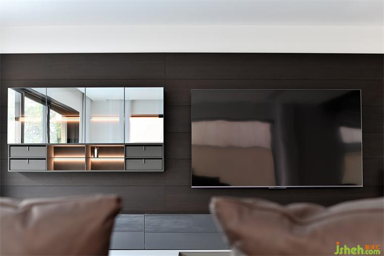 原生黑胡桃木的貴族氣質與鏡面的反射效應,深邃,雋永。頂面裝置構筑的材質交替,為這套住宅增加了渾厚觀感。從室內到室外,每一個細節(jié)都力求將鉆研精神和現(xiàn)代色彩相融合,營造出一種低調的高級感,歷久彌新。The noble temperament of the original black walnut and the mirror reflection effect are profound and meaningful.The alternation of materials of the top device adds a rich look to the house.From indoor to outdoor, every detail strives to integrate the research spirit with modern color,Create a low-key high-level sense,Time is new.