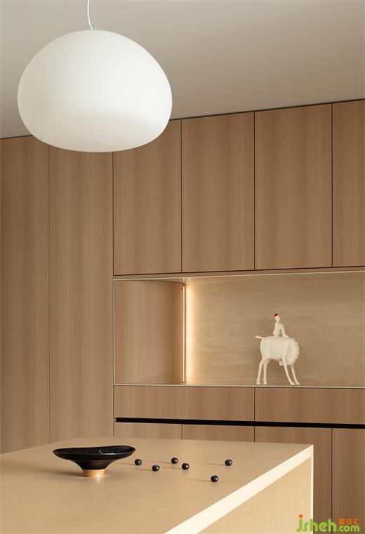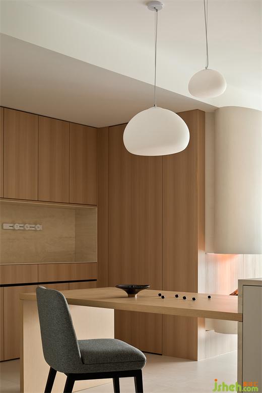 蘇州依蘭云庭家裝設(shè)計(jì)運(yùn)用原木色的中性模糊黑與白的邊界,柔和的燈光低調(diào)而優(yōu)雅地介入其中,在極簡(jiǎn)的空間風(fēng)格里,凸顯有質(zhì)感的生活“痕跡”。浸潤(rùn)在煙火氣里的廚房,有著幾分尋常人家的溫婉與熱鬧,待香氣散盡,空間再次重歸靜謐與舒緩。