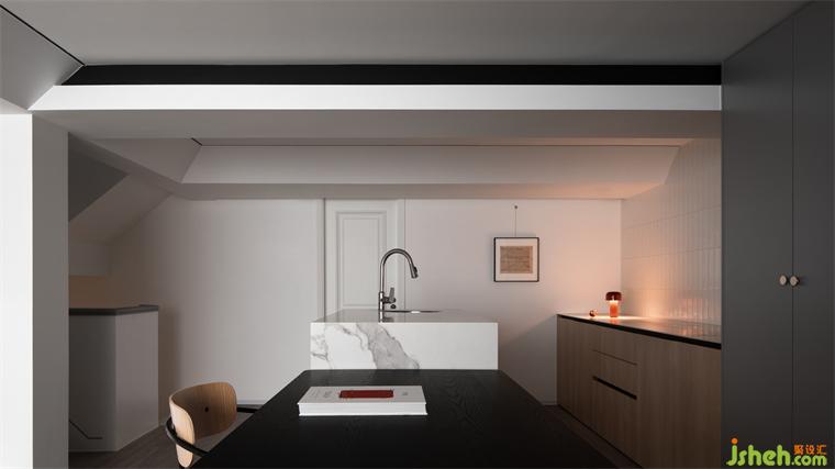 長桌與操作臺(tái)簡單質(zhì)樸,卻實(shí)用,演繹著空間里的不同場(chǎng)景。是書房,是水吧區(qū),是親子活動(dòng)的場(chǎng)域......簡約的空間因可塑性而活了起來。