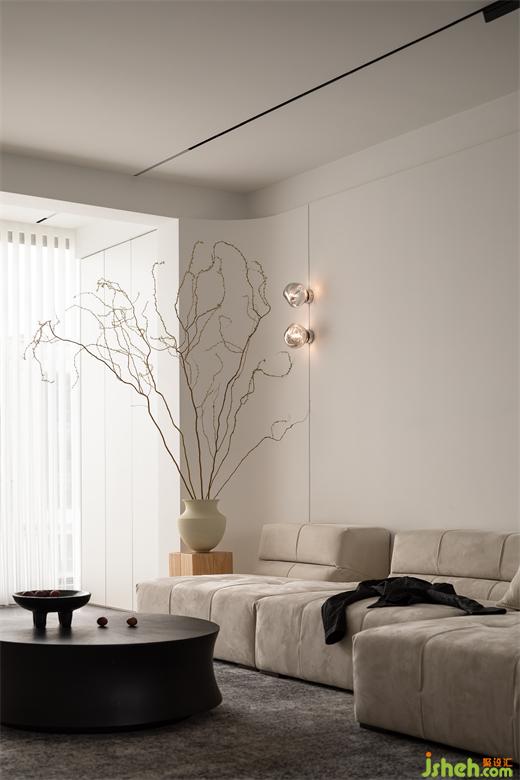 客廳的無(wú)主燈設(shè)計(jì)再次強(qiáng)調(diào)了“返璞歸真”的至簡(jiǎn)之道,極大程度保留空間的完整性。自然的紋理,淺淡的色調(diào),家裝設(shè)計(jì)將精簡(jiǎn)靜謐的氣質(zhì)再次升華,搭配轉(zhuǎn)角的弧形處理,賦予空間更為柔和的視覺感觀。自由舒適的模塊化沙發(fā),讓日常生活有了更多的變化與可能性。