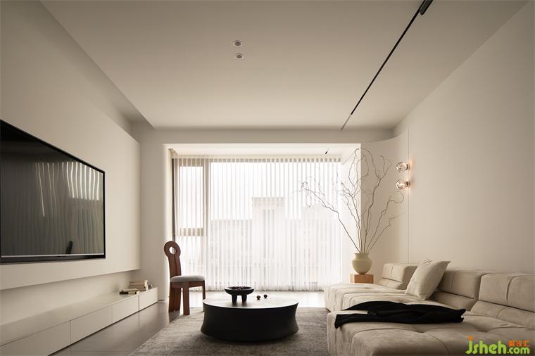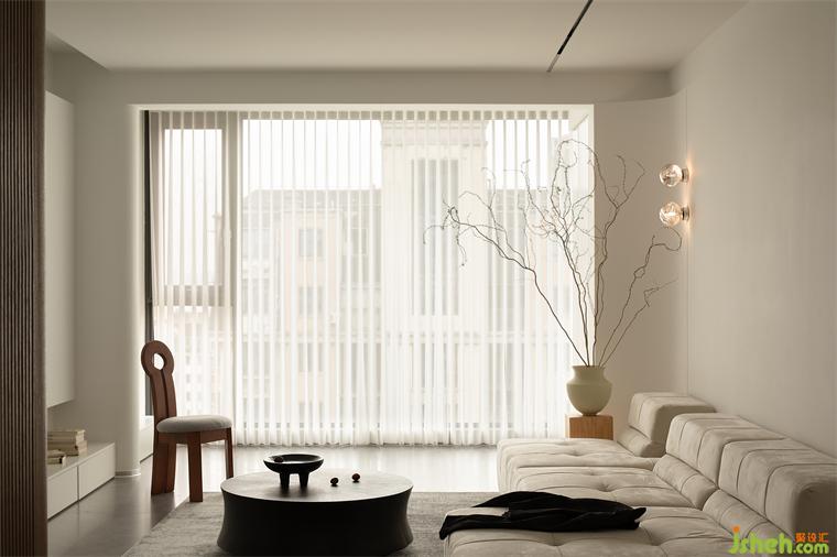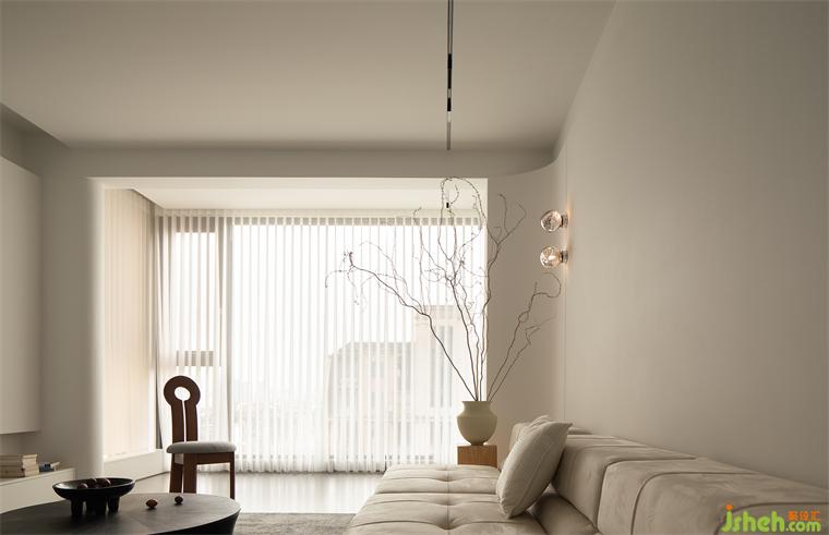 光線透過卷簾的縫隙介入,流淌于室內(nèi)的每個(gè)角落,它不僅僅是釋放疲倦的休憩場(chǎng)所,更承載著日常的記憶與情感。迎著落日余暉,細(xì)細(xì)感受生活的美好和靜謐。