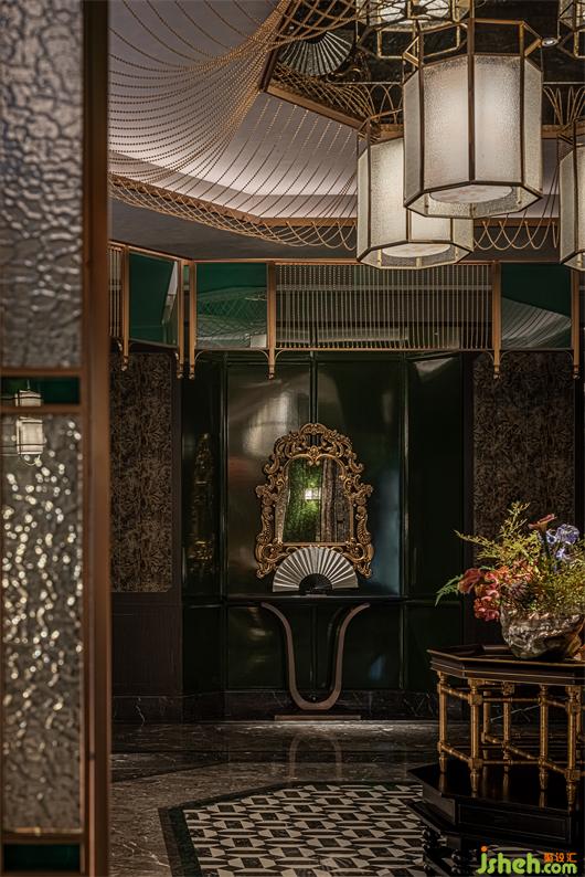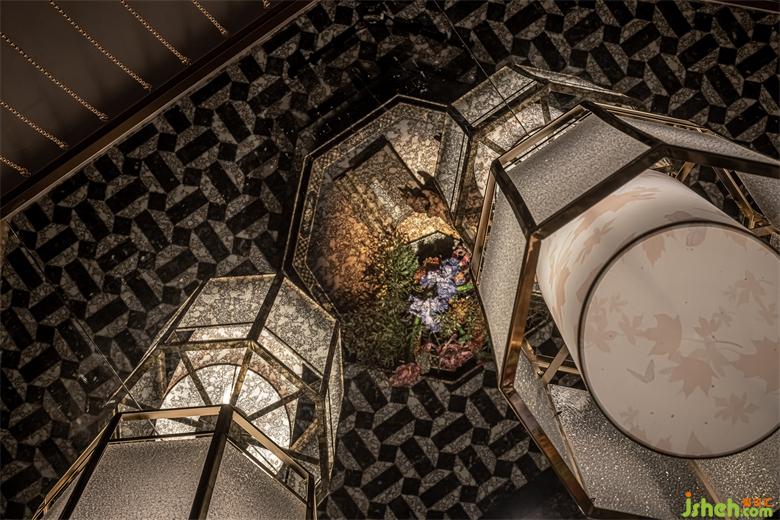 Using modern techniques to interpret the past history, the regular octagonal installation on the top of the hall is like being under an ancient pavilion. The chandelier in the center of the top surface and the octagonal table on the ground all echo with it.