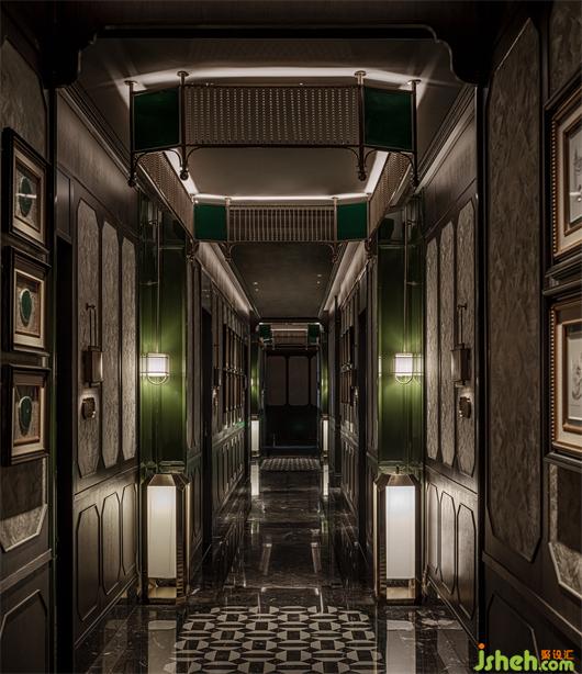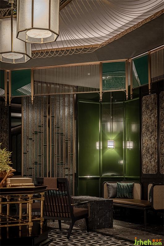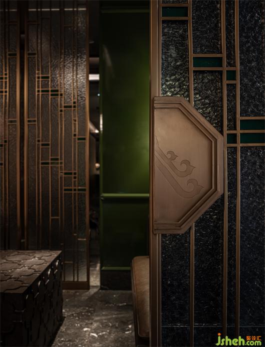 材質(zhì)選用上主要以懷舊質(zhì)感為主,深沉的石材與木飾面,養(yǎng)生店設(shè)計搭配古銅金和墨綠色為空間烘托復古調(diào)性。馬賽克花磚,斑駁的繡鏡,花色墻紙的搭配使環(huán)境更加豐富多元,也為細節(jié)部分提供了更為精致的表現(xiàn)。