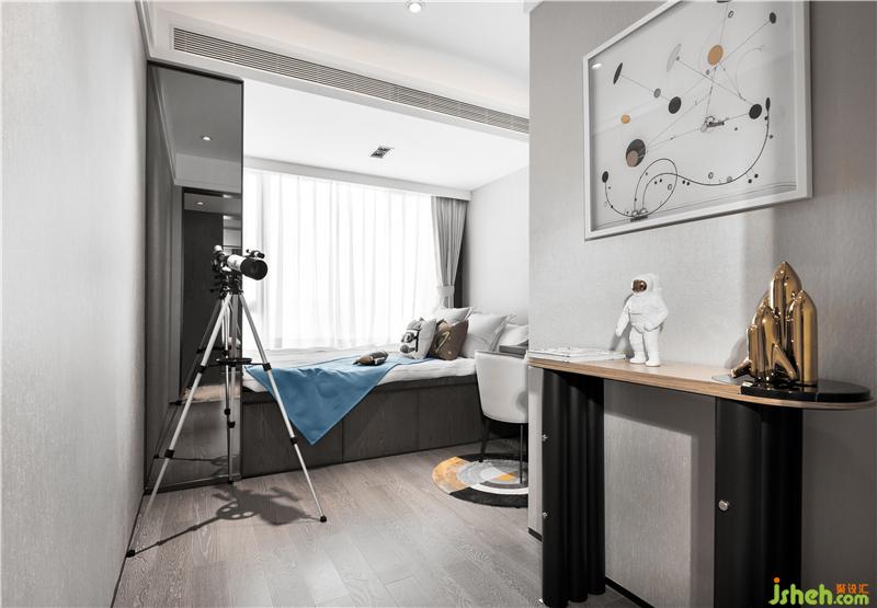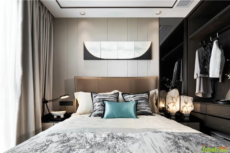 主臥的色調(diào)有一種寧心安神的吸引,深圳室內(nèi)設(shè)計師背景墻褐色和米黃的硬包組合似是一劑助眠的良方;一日的勞作后,能夠無慮的安心入眠,無疑是件極其美哉的事情了!