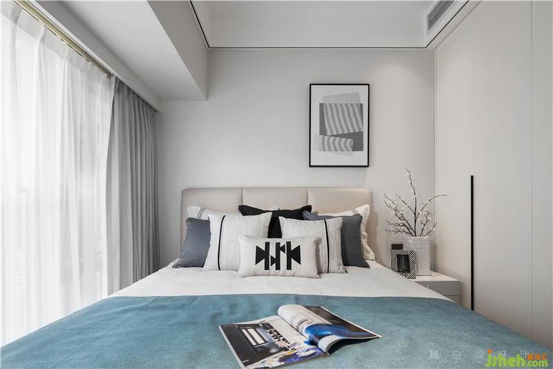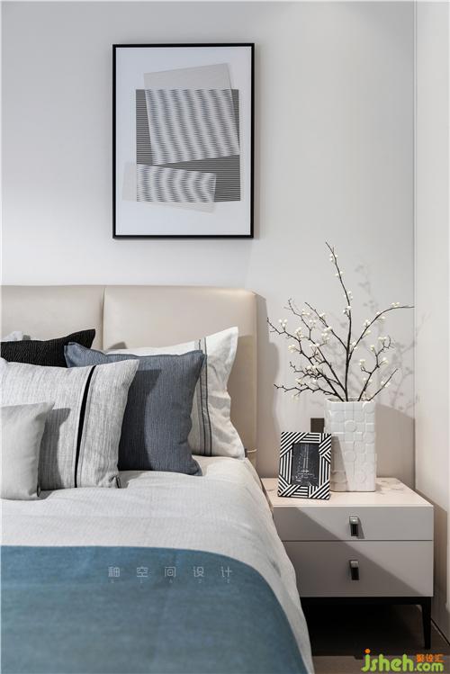同為大地色系的硬包背景,與米黃色皮質(zhì)床頭呼應(yīng)著深褐色地板,深圳室內(nèi)設(shè)計(jì)師在皎潔的天花、柜體和床品的映襯下,溫潤(rùn)安謐如清晨滋養(yǎng)萬(wàn)物的沃土;盛放的那一抹比斯開藍(lán),清麗亮眼,出落得那樣寧?kù)o平和,是一派不艷俗的明艷動(dòng)人。