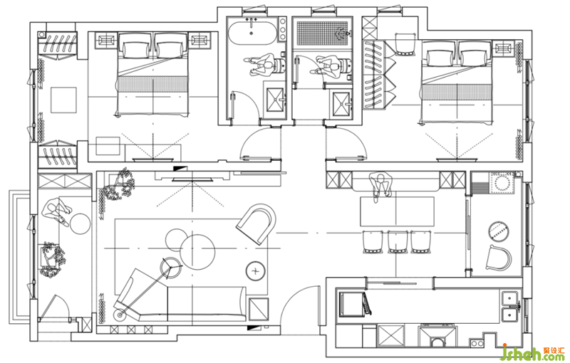 沒有繁冗裝飾,幾盆綠植將空間喚醒