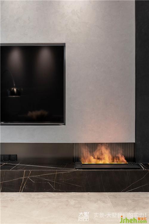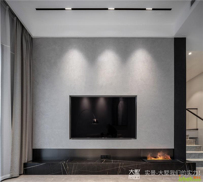 純色電視背景墻面借以黑色邊框修飾