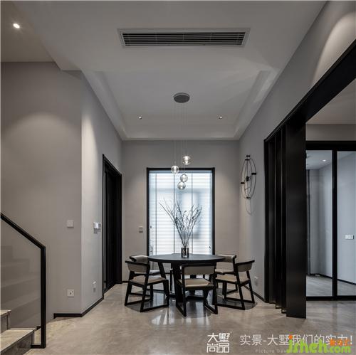 玄關(guān)頂部以筒燈進(jìn)行集中照明