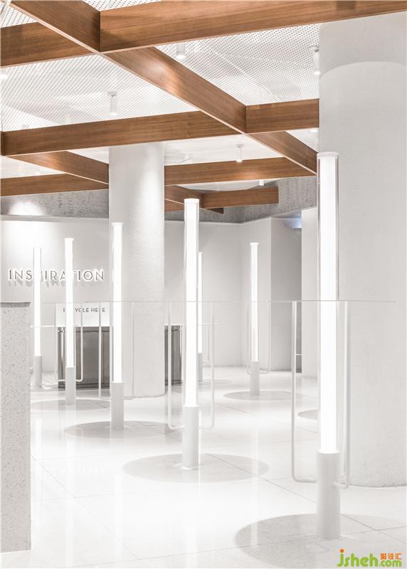 The light posts dim and brighten gradually over time, just like the way a lighthouse emits light. Through the glass box at the entrance, people can see the gradual dark and light changes. Under the influence of the natural light, the space presents distinctive and enchanting looks from morning to evening.