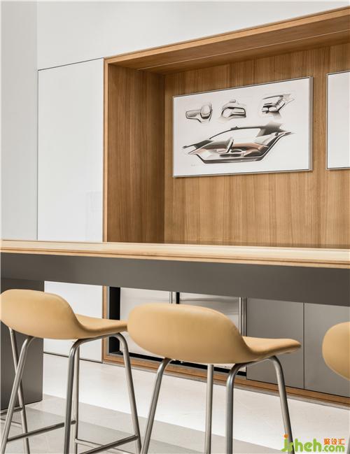 基于用戶體驗布局多功能用戶專區(qū),試圖成為品牌用戶除了工作、生活之外的第三空間,4S店裝修設(shè)計為用戶提供咖啡品鑒、休閑社交、品牌活動等多樣化的生活休閑場景。親和力的木色與柔和的光線構(gòu)造舒適、自然的氣息,品牌產(chǎn)品細(xì)節(jié)的手繪圖則賦予空間藝術(shù)風(fēng)格的同時低調(diào)的傳達(dá)出品牌的工匠精神。
