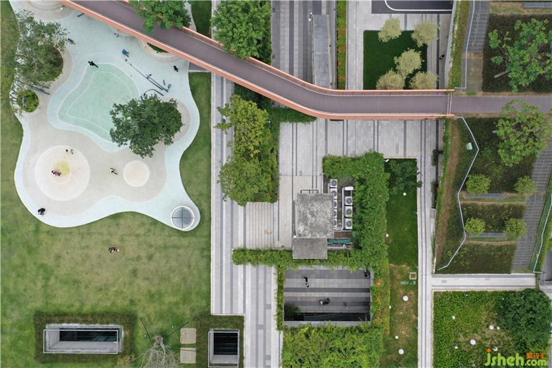 辦公室位于萬(wàn)科設(shè)計(jì)公社創(chuàng)意園區(qū),地面層為開(kāi)放式的公共綠地公園,地下空間與公園融合為一個(gè)開(kāi)放式的園區(qū),作為周邊住戶的日?;顒?dòng)公園及創(chuàng)意行業(yè)的辦公室。