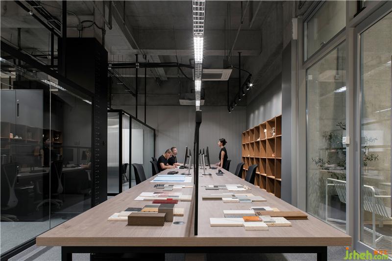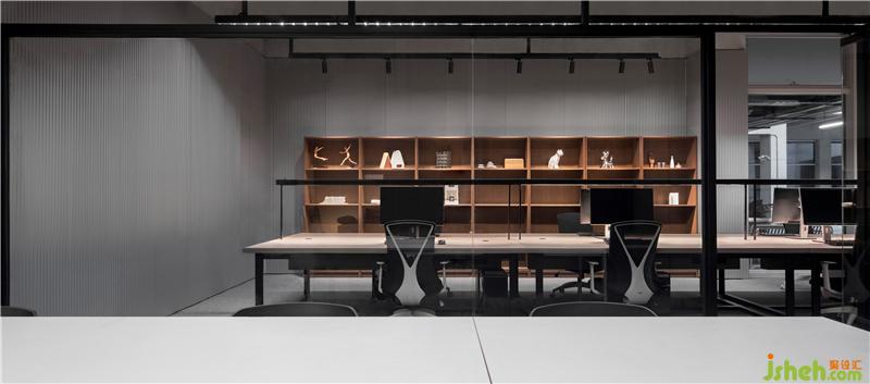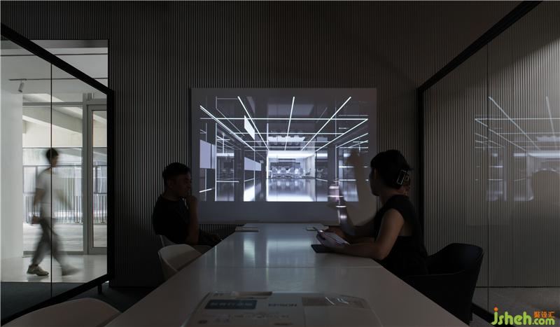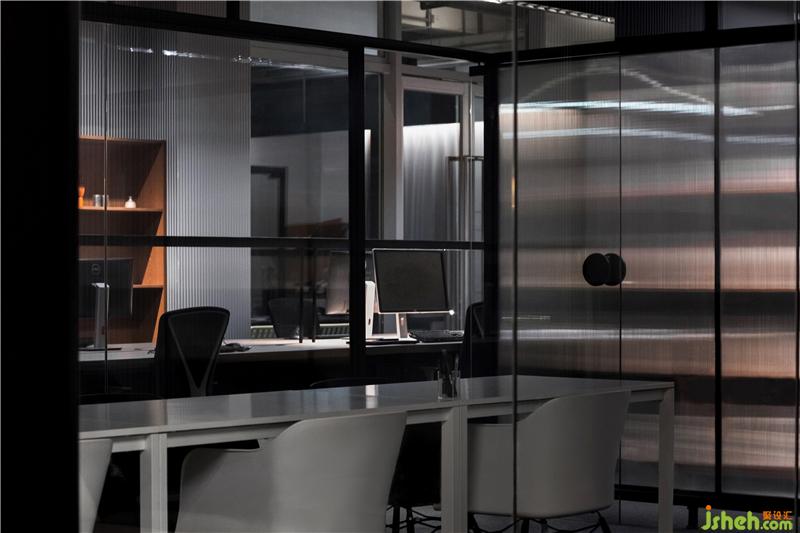 ▼ 在走廊透過(guò)會(huì)議室看到辦公區(qū)