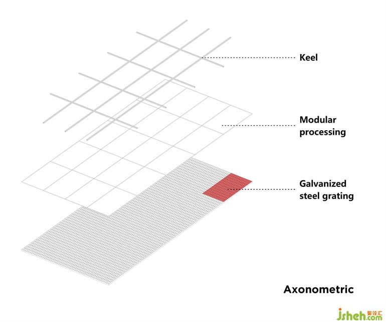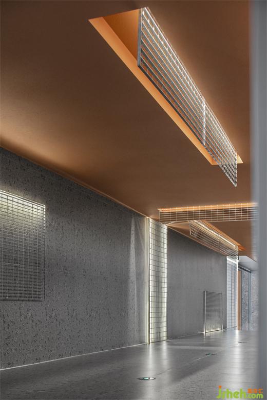 影城設(shè)計光源與天花金屬網(wǎng)的關(guān)系:從不同的角度可以看到光線透過網(wǎng)格產(chǎn)生的光暈
