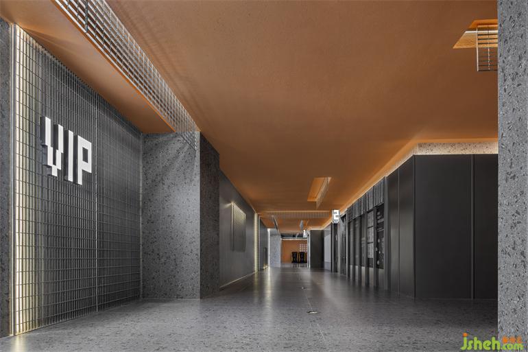 觀影通道作為顧客從大廳進(jìn)入影廳的過渡空間,是一個使顧客強(qiáng)化印象的重要空間,亮橙色天花體塊,從大廳向觀影通道延伸。