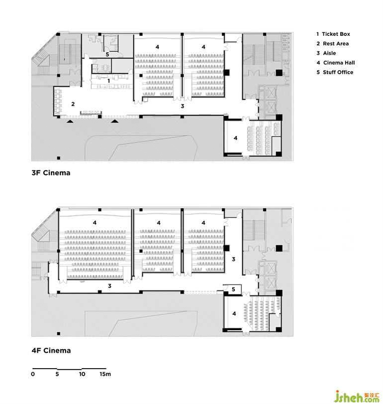 The design of the cinema combines structural blocks and colours. On the basis of meeting the needs of audio-visual effects, a small amount of bright orange and structure are overlaidon the dark tones to make the cinema more dynamic and immersive.
