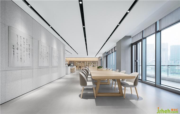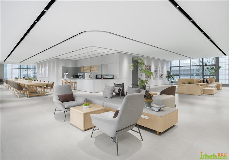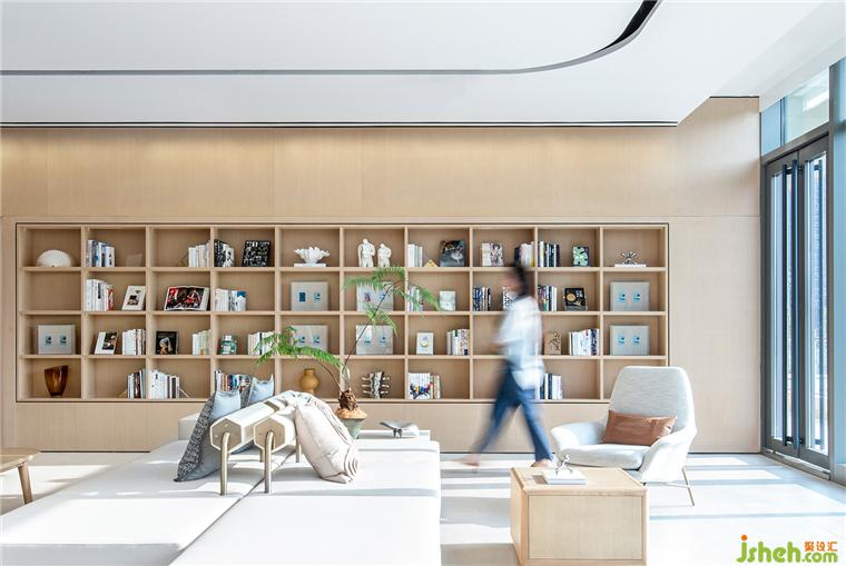 進(jìn)入二層Club,空間內(nèi)部大面積使用米白色與原木的搭配,4S店設(shè)計(jì)通透的落地玻璃為室內(nèi)帶來明亮舒適的自然光照,水岸長廊與城市綠地也進(jìn)入視野,自然、溫暖、舒適包裹著空間中的人們,形成一個(gè)友好的共享社區(qū)氛圍。