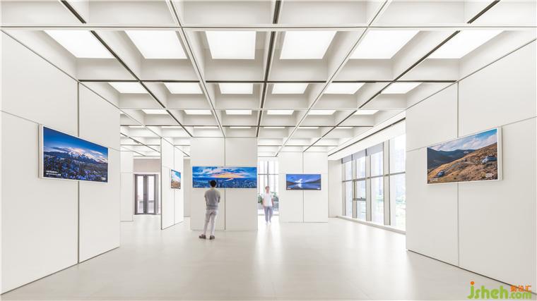 三層的中部空間,MOC運(yùn)用開敞式的藝術(shù)展館的布局方式,并設(shè)計(jì)了一系列平時(shí)被收納在墻體內(nèi)的移動(dòng)式隔斷系統(tǒng),4S店設(shè)計(jì)使空間能夠根據(jù)使用場(chǎng)景進(jìn)行靈活的變動(dòng),無論是展覽、論壇、講座、音樂會(huì)、瑜伽、健身……這個(gè)空間都可以承載。