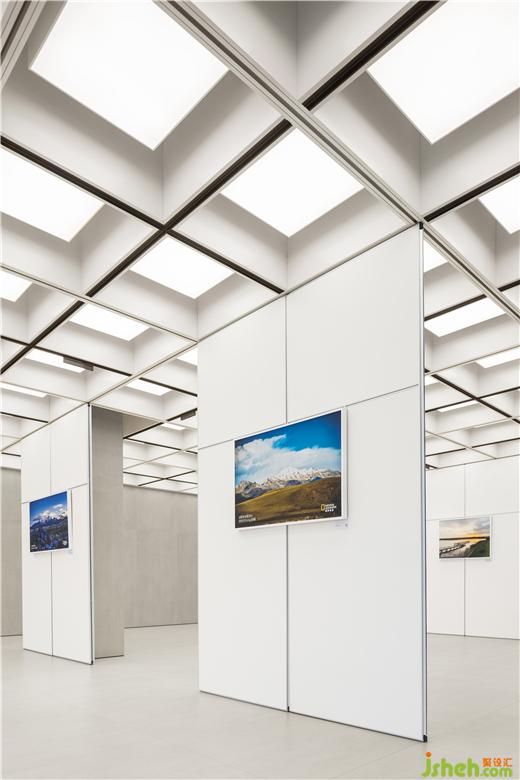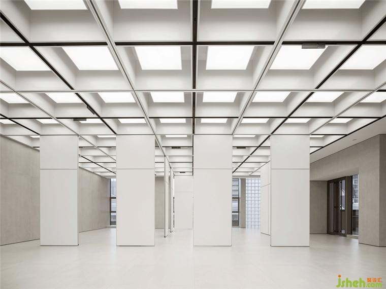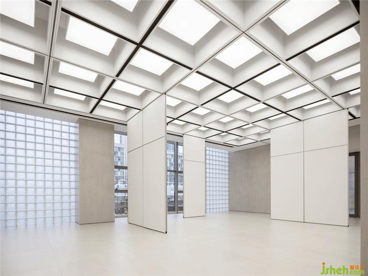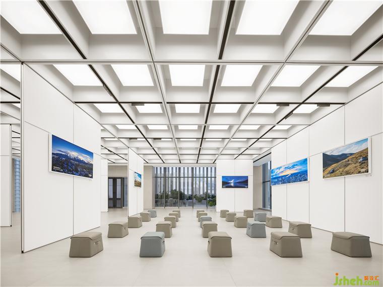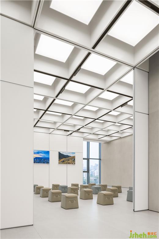 4S店設(shè)計(jì)結(jié)合天花的隱藏式吊軌和萬(wàn)向輪,讓隔斷可以由一人輕松推動(dòng),靈活地進(jìn)行空間場(chǎng)景的轉(zhuǎn)換。