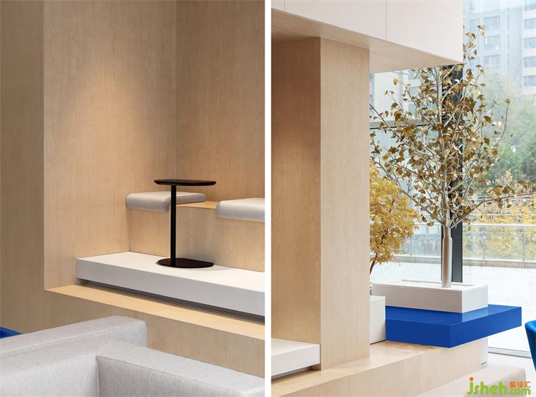 溫暖的調(diào)性和多樣化的座位形式滿足了不同時段的使用需求,除此之外,極氪中心西安南湖金座展廳設(shè)計規(guī)劃了一個獨立的長桌閱讀室以滿足安靜閱讀的需求。
