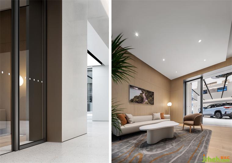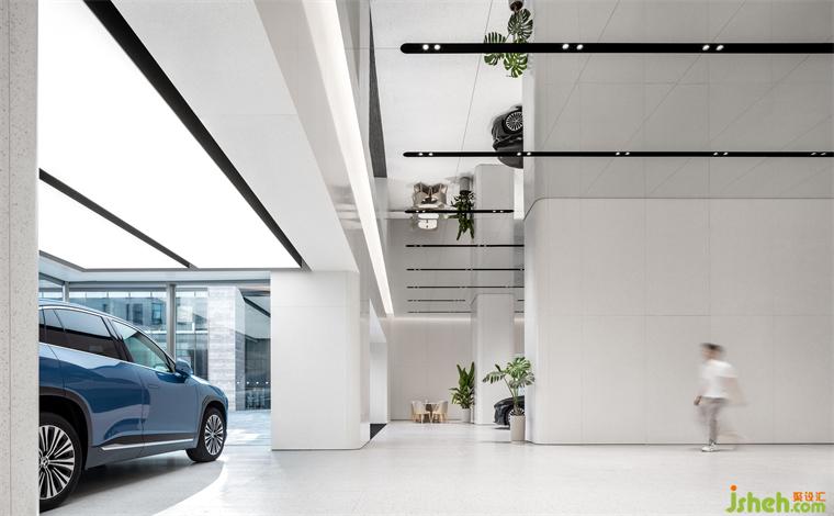 展車區(qū)被定義為Gallery藝?yán)龋∑淙缢嚴(yán)劝愕募兇?、極簡的美學(xué)印象,深圳展廳設(shè)計(jì)師通過干凈有力的材料語言突出產(chǎn)品的設(shè)計(jì)哲學(xué),均勻的頂面光源渲染了展廳的空間氛圍。