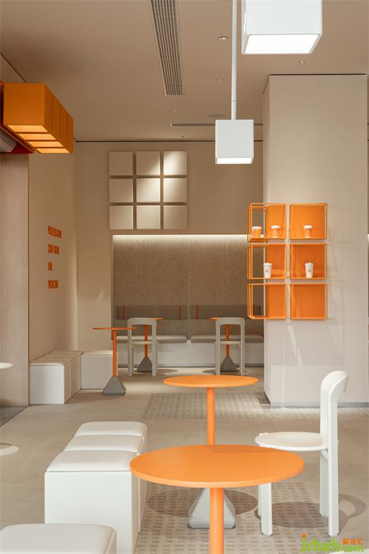 本案的設(shè)計(jì)旨在為NOWWA咖啡品牌提供一個(gè)在不同店態(tài)下具有識(shí)別性的空間系統(tǒng)。MOC以基礎(chǔ)的cube形態(tài),演變出具有識(shí)別度的空間模塊,為顧客帶來富有趣味性和多功能性的體驗(yàn)。在與不同環(huán)境融合的同時(shí),強(qiáng)化與街區(qū)的聯(lián)系,空間系統(tǒng)設(shè)計(jì)為顧客創(chuàng)造一個(gè)提供愉悅“停頓”的場(chǎng)所。