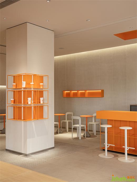▲橙色的cube構(gòu)成的入口屋檐一直延伸至室內(nèi)