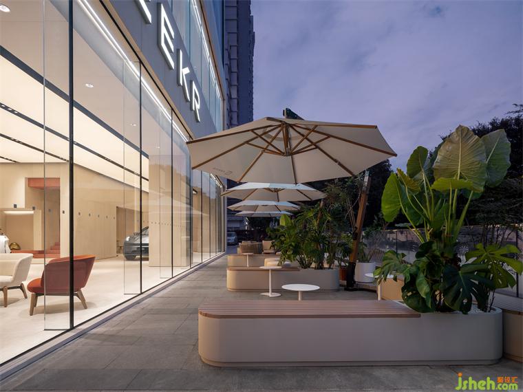 4S店設(shè)計(jì)透過通透的玻璃幕墻,城市綠化景觀為用戶提供了放松心情的視覺享受。
