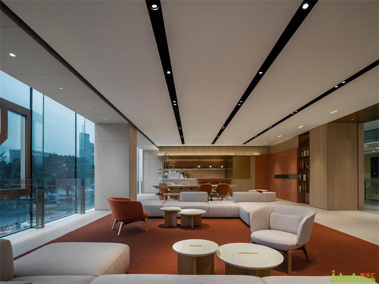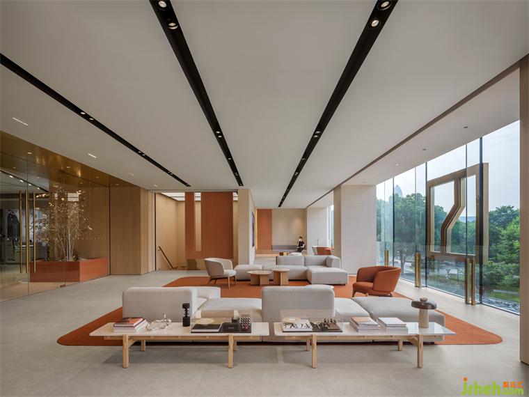 Building upon the warm and gentle ambiance created by the beige stone,the designerhas incorporated more comfortable elements on the second floor, including orange carpets, golden stainless steel and beige fabrics, enriching the material palette to enhance the spatial quality and provide a sense of comfort and relaxation.