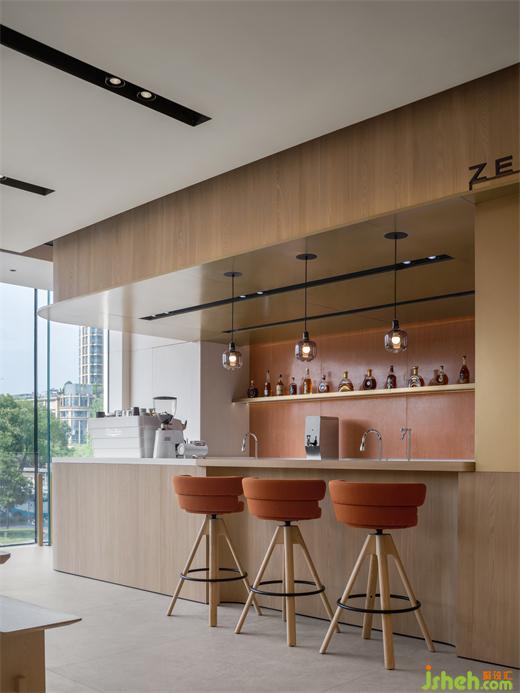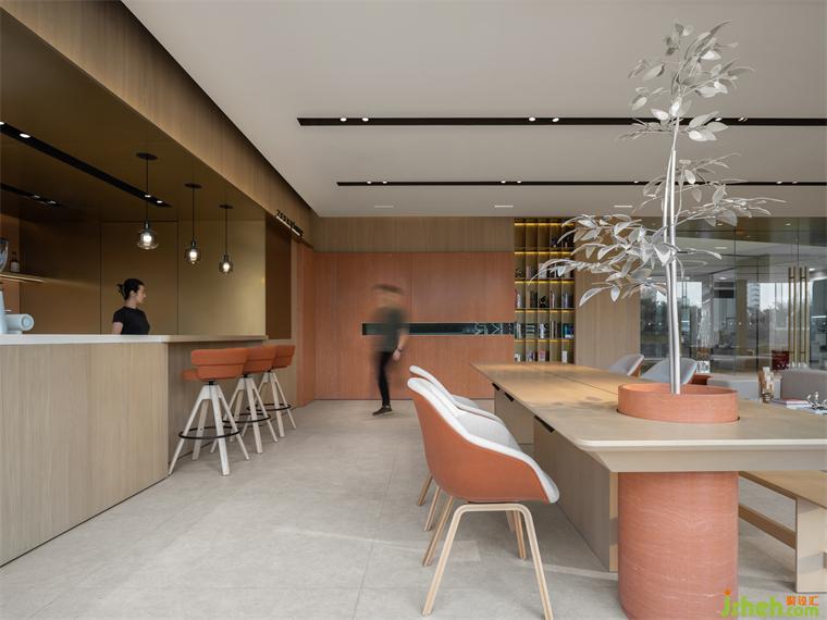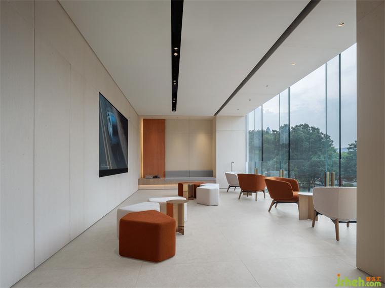 4S店設計多功能區(qū)設置在樓梯旁,形成一個相對獨立的區(qū)域。不僅在日常可以作為休閑區(qū)的補充,也可快速轉(zhuǎn)換為獨立活動區(qū)。