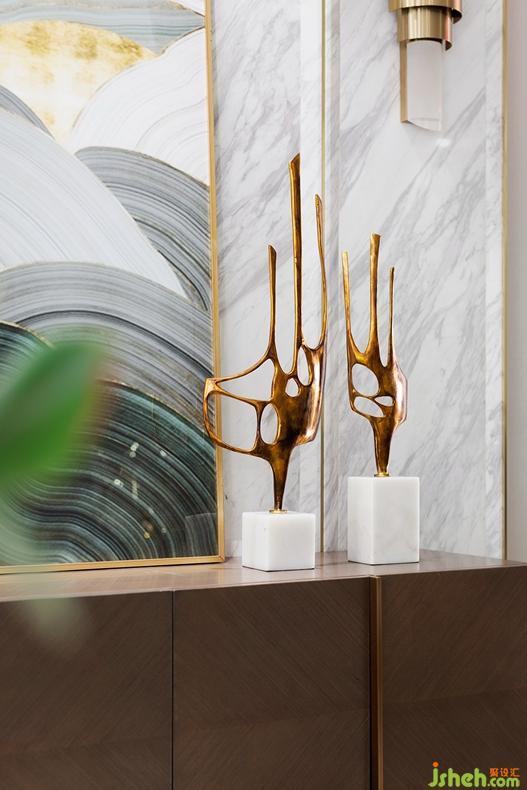 本案中,我們花了一些心思把山水和自然的感覺在空間里做了時間的跨度,利用新型材料的形重新詮釋水墨山水的影,賦有肌理感的木質(zhì)與金屬、靈動飄逸的燈飾、古典與現(xiàn)代結(jié)合的屏風、新中式的配件,這些看似細微的改變在交相呼應中渲染出一幅漸入佳境的時空映像,何為“漸”,就是在微乎其微的量的累積中發(fā)生著質(zhì)的改變。