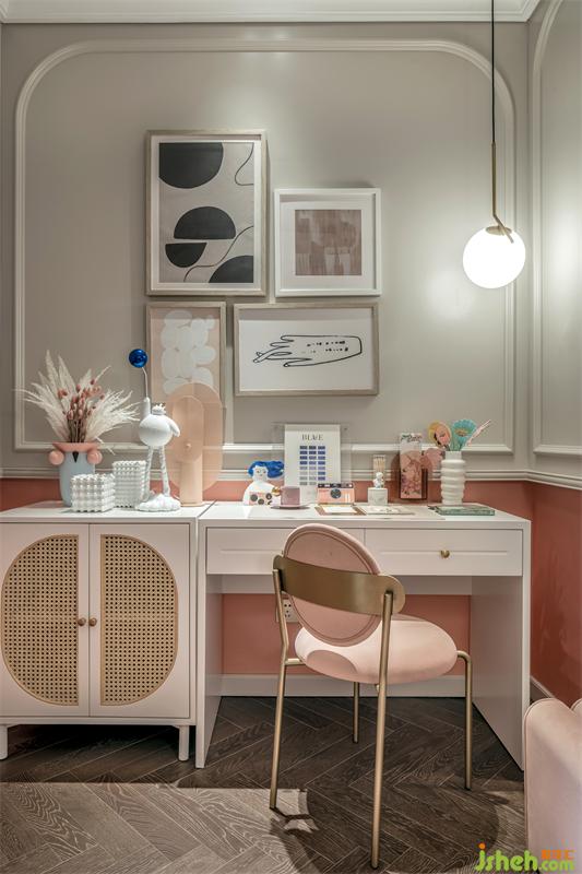 每個(gè)小女孩幾乎都對(duì)一間粉色系公主房毫無抵抗之力。粉色與白色相互交織,讓小女孩能夠?qū)P闹轮镜慕?jīng)營(yíng)生活的爛漫。
