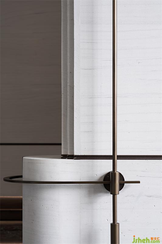 柔和的意境從接待廳的長(zhǎng)廊開始,盡情引入自然光線營(yíng)造空間的律動(dòng),設(shè)計(jì)師在線與線、線與面之間采用弧形處理,一種翹首以待的儀式感讓行走在空間里的人們賓至如歸。我們希望可以通過設(shè)計(jì),讓城市居住者來處可追尋,去向有所歸屬。