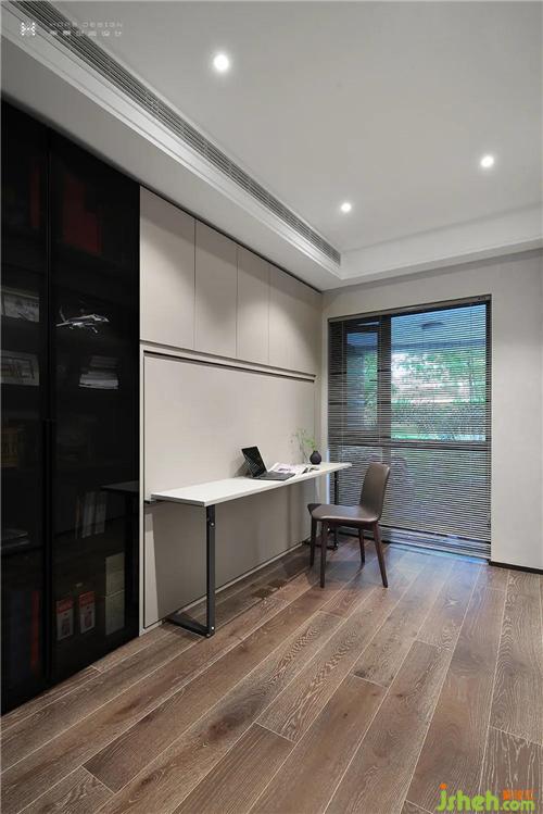 功能房的墻面,設(shè)計師巧思奇想,于一面柜體之中藏了張翻板床,客人留宿時可做客房使用。充分體現(xiàn)了設(shè)計在家居生活中的靈活性,將空間利用率和功能實用性得到大大提升深圳裝修設(shè)計。