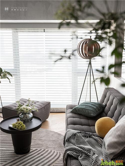 柔軟彈性沙發(fā)搭配創(chuàng)意式落地?zé)?,在休憩的同時(shí)不缺氛圍感。